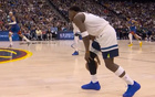 库里赛前热身秀了一记单臂暴扣膝盖看上去是完全没事了