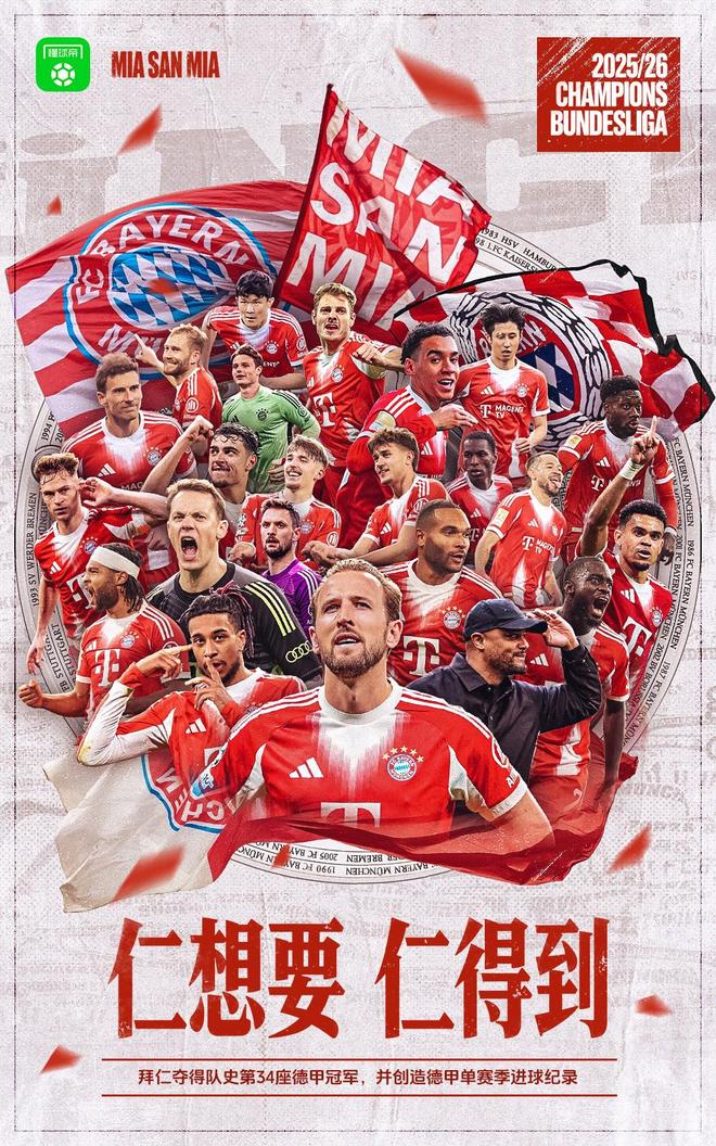 南部超仁!拜仁提前四轮卫冕德甲冠军,将冲击第3次三冠王
