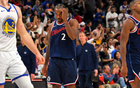 库里赛前热身秀了一记单臂暴扣膝盖看上去是完全没事了